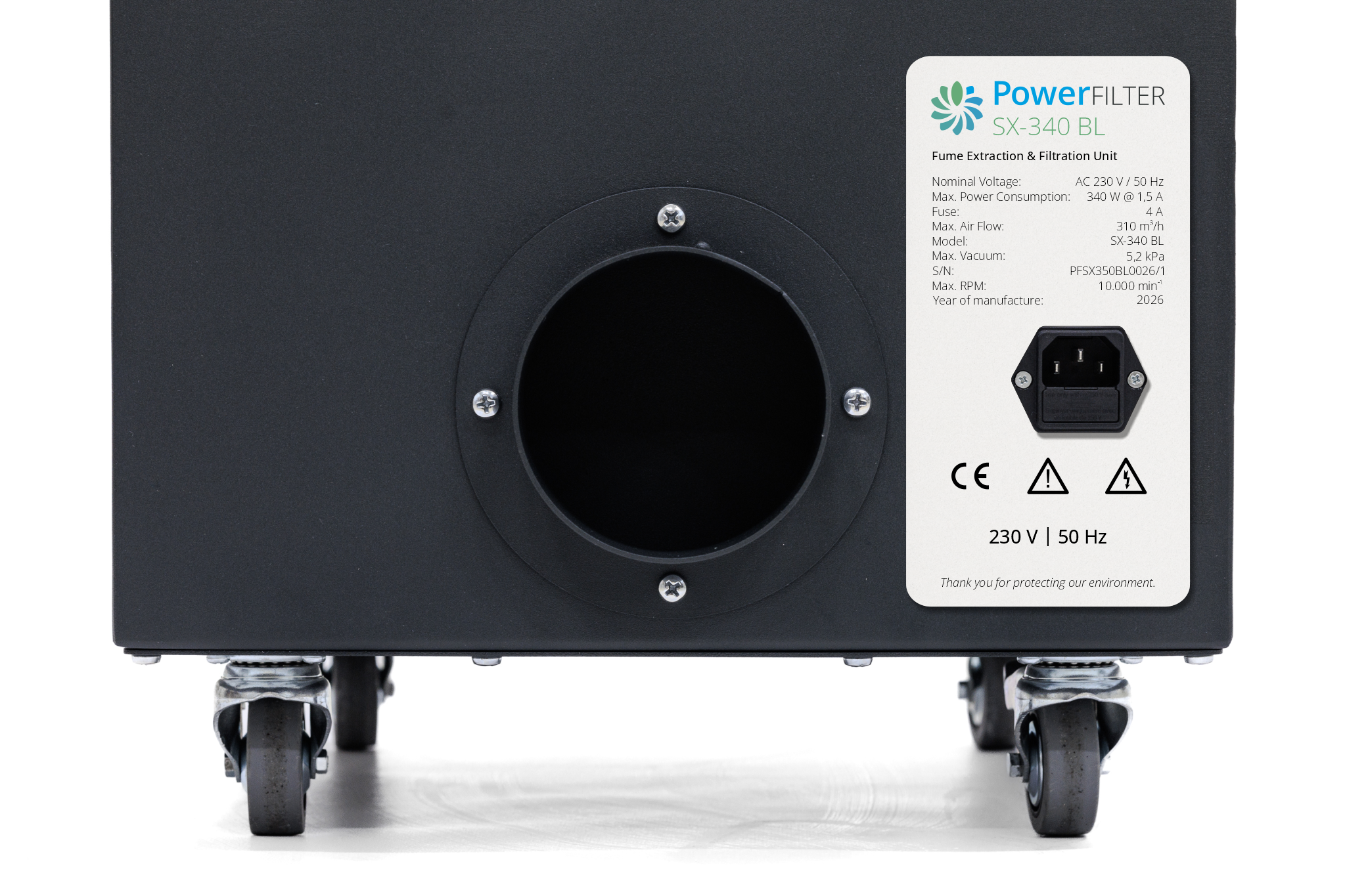 Ez a modell a PowerFILTER S-340 BL továbbfejlesztett változata, amely kifejezetten gazdaságos megoldást kínál kisebb (max. 600 mm széles) lézervágó és gravírozógépek füst-, por- és szagmentesítésére. A beépített bővítőmodul egy F9 finomságú zsebes szűrőt tartalmaz, amely megnöveli a por tárolási kapacitást, így csökkenti a szűrőcsere gyakoriságát és költségét.